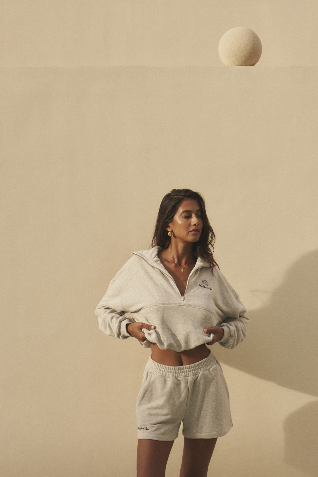 Venus Zip Gray in an oversize style is the epitome of sporty chic and comfort. Made from soft, high-quality knit fabric, it ensures all-day comfort. The gray color and subtle "Le Sport Club" logo give it a minimalist yet stylish character. The half-zip turtleneck adds a modern touch, while the loose, oversized fit allows for freedom of movement and fits perfectly with current trends. Ideal for both workouts and everyday casual outfits, it creates an effortlessly stylish look.
