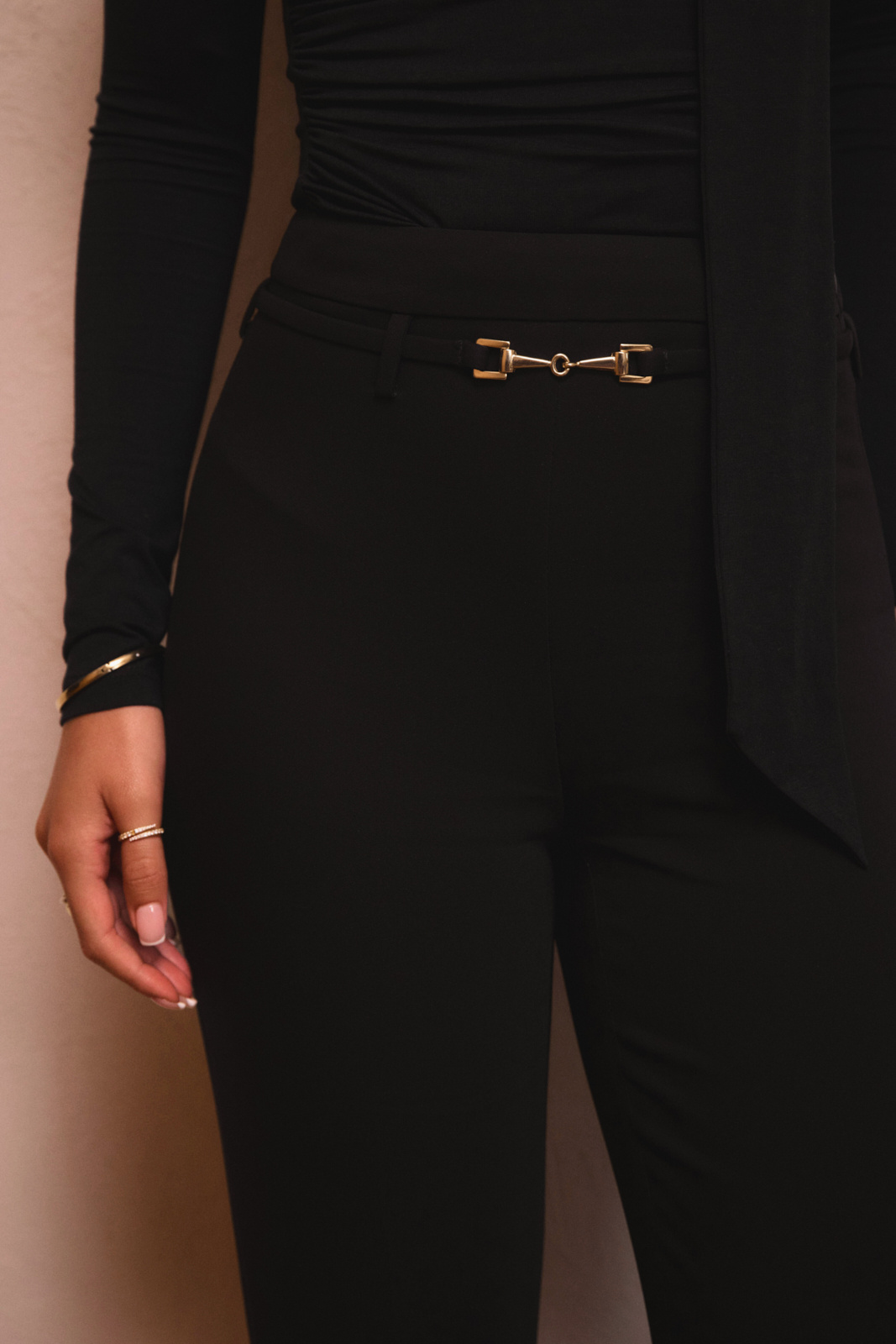 Audrey Trousers Noir to kwintesencja elegancji i prostoty, idealna zarówno na formalne, jak i codzienne stylizacje. Wykonane z wysokiej jakości materiału, te spodnie o prostym, wydłużonym kroju pięknie podkreślają sylwetkę i dodają jej optycznej lekkości. W zestawie znajduje się subtelny, ozdobny pasek z delikatną klamrą, który podkreśla talię i nadaje całości nowoczesnego charakteru. Te spodnie doskonale sprawdzą się zarówno w połączeniu z eleganckim topem, jak i bardziej swobodnymi elementami garderoby, tworząc stylowy i ponadczasowy look. Cena zawiera również pasek, jest to osobny element. Pasek jest odpinany.